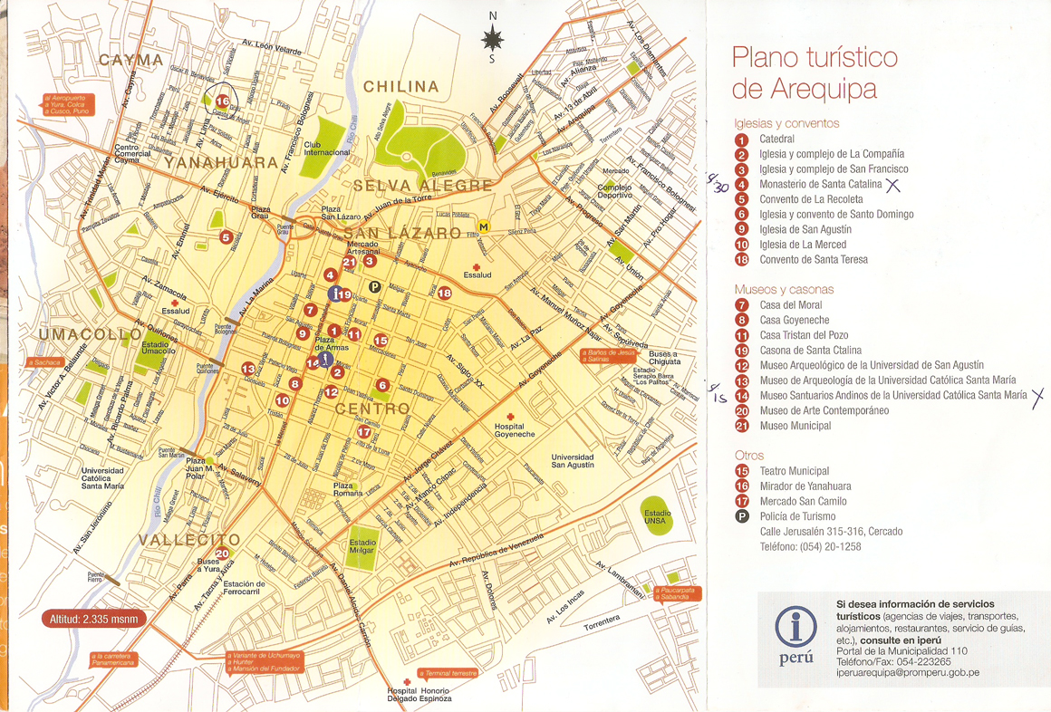 Colaboradores Enrico Luzi Postado Julho 2, 2010 Autor Colaboradores Postado Julho 2, 2010 (editado) Arequipa é um lugar bem agradável. No terminal de ônibus pegamos um panfletos de hostal e a própria moça das informações ligou pra uns dois pra perguntar o preço. O Hostal Santa Catalina iria cobrar s.40 pelo quarto matrimonial com baño privado então fomos lá dar uma checada (taxi por s.10). Próximo da Plaza e arrumadin e com internet incluída, tava bom pra uma noite só, afinal o plano era fazer o passeio do Colca nos dois dias seguintes e partir pra Tacna. Demos uma volta pela cidade, compramos um monte de frutas pra experimentar em um armazém, almoçamos num restaurante com terraço numa travessa perto da Plaza (típico menu por s.15) e depois de perguntar em umas 10 lojas pelo tour do Colca, fomos com a ... (vou procurar aqui a nota fiscal, não consigo lembrar o nome) que cobrou s.60. De tarde fomos visitar o museu da múmia Juanita e achei irado ! Começa com um vídeo de 20min sobre a descoberta da múmia e como ela foi parar lá. O tour guiado (custa s.10 a entrada e não inclui a gorjeta pro guia, demos mais s.10 pq ela foi excelente !) passa por várias salas com objetos da época dos Incas e dos sacrifícios feitos pra apaziguar a ira dos deuses. Roupas, oferendas, comida, etc, até chegar ao templo da Juanita que é impressionante ! Um cubículo mantido em baixíssima temperatura com a múmia perfeitamente conservada, o rosto, as mãos, incrível ! Tem um mirante bacana perto da cidade, dá pra ir de táxi por s.5 e tem bastante restaurante de noite. Como o hostal não tinha café incluso compramos várias coisas no mercado que fica na Plaza (pão, manteiga, biscoito) e deu tudo s.4 ! Foto - Plaza de Armas upload/galeria/fotos/20100702010813.jpg Foto - Mapa do Centro de Arequipa com as principais atrações upload/galeria/fotos/20100708003540.jpg Dicas: - A Plaza de Armas de noite é espetacular - Museu da Juanita é imperdível - Alpaca é muito saboroso Editado Julho 8, 2010 por Visitante Citar