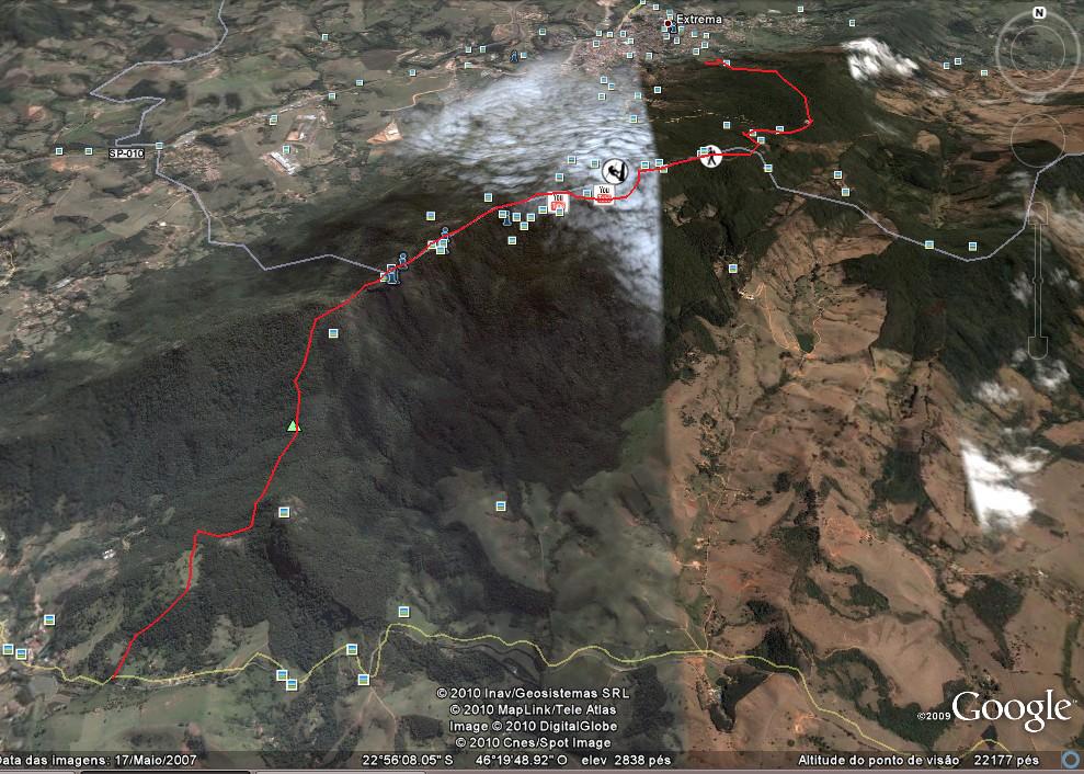 Membros de Honra Augusto Postado Agosto 3, 2006 Membros de Honra Postado Agosto 3, 2006 (editado) Oi pessoal. Esse relato é sobre a travessia da Serra do Lopo, iniciando em Extrema (MG) pela Trilha do Pinheirinho e terminando na Rodovia que segue para Joanópolis (SP) realizada nos dias 15 e 16/07 juntamente com a Márcia, Jorge, Ronald, Hariel, Silvana e Laura. Pegamos um tempo perfeito com visuais lindos, mas tivemos alguns problemas por informações e dicas erradas. Fotos + carta topográfica + Imagem do Google Earth com a trilha plotada: O Pico do Lopo é um dos últimos lugares que ainda não conhecia na Serra da Mantiqueira, mas a subida e descida por Extrema em um fim de semana não achava legal. O ideal era procurar sobre alguma trilha que descia para Joanópolis, já do outro lado da serra. Depois de algumas pesquisas na net não encontrei nenhuma informação ou quem sabia não queria compartilhar – já tinha passado por situações semelhantes antes e nem liguei. Em uma lista de trekking da qual participo, troquei alguns e-mails com um colega da lista. Ele me disse existia uma trilha que descia em direção a Joanópolis e que o início dela ficava entre a Pedra das Flores e a Cabeça do Gigante - que na verdade é o topo do Pico do Lopo. O roteiro já estava marcado: subir por Extrema, acampar na Pedra das Flores, chegar no topo do Pico do Lopo e no dia seguinte descer para Joanópolis. O Jorge, Ronald, Hariel, Márcia, Silvana e a Laura aceitaram o desafio e lá fomos nós. Marcamos todos de se encontrar na Rodoviária do Tiete em SP, já com as passagens compradas para o horário das 07h30min de Sábado do dia 15/07. A viagem foi bem tranquila e as 09:00 hrs já estávamos chegando na Rodoviária de Extrema. Agora era seguir para o início da Trilha do Pinheirinho, que sobe em direção a crista da serra, o que não é muito difícil. Da Rodoviária seguimos na direção da Igreja Matriz e de lá tomamos a rua que termina no antigo reservatório de água da COPASA, a 30 minutos desde a Rodoviária. O local é conhecido como Mirante da Caixa D’água e para iniciar a trilha é só atravessar uma pequena porteira e dali seguir pelo meio de um pasto. Aqui que se inicia a famosa Trilha do Pinheirinho que segue por trilha demarcada e aclive suave, passando por uma pequena área de brejo alguns minutos à frente. Alguns minutos de trilha e logo encontramos a primeira bica de água, mas é melhor esperar um pouco mais, pois à frente tem uma enorme bica que desce de altura de 2 mts por um cano (o famoso Bicão). Depois do brejo, a trilha logo sai do pasto e entra na mata e uns 30 minutos desde o início da trilha chegamos ao Bicão. Aqui paramos para um lanche e pegamos água. A trilha agora segue com subida bem mais íngreme para direita, mas sem problemas de navegação. Começam a aparecer algumas janelas com o visual de Extrema e as 11:00 hrs chegamos na Pedra da Sacerdotisa. Aqui é bom lugar para um descanso da íngreme subida pela trilha. Desse lado só aparece o visual do lado norte. A partir desse ponto a trilha começa a se estabilizar e segue um pouco para a esquerda, na direção leste até encontrar um riacho. Aqui paramos novamente e para continuar a trilha é só retornar uns 10 metros e seguir por uma outra trilha na direção sul. O aspecto da trilha fica um pouco melhor, pois a partir daqui as árvores são muito altas, não deixando o Sol passar e com isso a temperatura fica um pouco mais amena dentro da mata. Cerca de 50 minutos desde a Pedra da Sacerdotisa, chegamos na Torre da Embratel, localizada à direita da trilha e no meio da mata. O lugar estava deserto, então resolvemos pegar algumas mexericas e laranjas dentro do terreno. Só deu um pouco de trabalho para pular a cerca. Divididas as frutas agora seguimos por uma estrada em meio à mata até chegar nas bifurcações que do lado direito desce para Extrema; para esquerda Joanópolis e em frente nosso objetivo. Chegamos aqui por volta das 12:00 hrs e aqui a Silvana se lembrou que tinha esquecido a maquina fotográfica dela na Torre da Embratel e ficamos esperando até ela retornar. Depois seguimos pela estrada até iniciar uma longa subida e ao término dela chegamos na entrada de uma Pousada à esquerda, onde paramos para um lanche e descanso. A vista daqui é toda voltada para Joanópolis, com a represa ao fundo. Energias repostas, seguimos pela estrada até passarmos ao lado de uma rampa de asa delta à esquerda, onde tiramos algumas fotos. O lugar tem um lindo visual ao sul, mas ainda tínhamos uma caminhada pela frente, por isso não ficamos muito tempo aqui. Voltamos para estrada e as 13h30min passamos ao lado de outras antenas de transmissão à direita e um pequeno estacionamento à esquerda que estava lotado. A partir daqui a estrada começa a descer e as 13h40min chegamos na entrada da Pousada Céu da Mantiqueira, onde bem do lado esquerdo se inicia a trilha até o Pico do Lopo. A trilha vai descendo seguindo para sul, mas logo se estabiliza e segue ora na crista, ora à esquerda, com janelas de Joanópolis e o Pico do Lopo bem ao fundo, na crista da serra. Depois de uns 30 minutos de trilha cruzamos com um grupo guiado por uma agência. Contamos umas 15 pessoas ou mais e um deles tinha uma camiseta da Pisatur. E mais uns 10 minutos chegamos a um pequeno riachinho. Água até tem, mas em pouca quantidade, onde pegamos com uma pequena caneca. Continuando pela trilha vão aparecendo outros mirantes à esquerda e a frente o Pico do Lopo se aproximando. Às 14h45min e depois de 1 hora de trilha chegamos na Pedra das Flores. O local é um pouco plano com vistas de toda a região de Joanópolis e a Represa do Jaguari e em frente o Pico do Lopo. No local encontramos alguns descampados junto da trilha onde o pessoal acampa e são inúmeros locais. Seguimos pelo platô da Pedra das Flores até retornar à trilha e iniciar a subida do Lopo. Bem entre a Pedra das Flores e o Pico do Lopo encontramos u