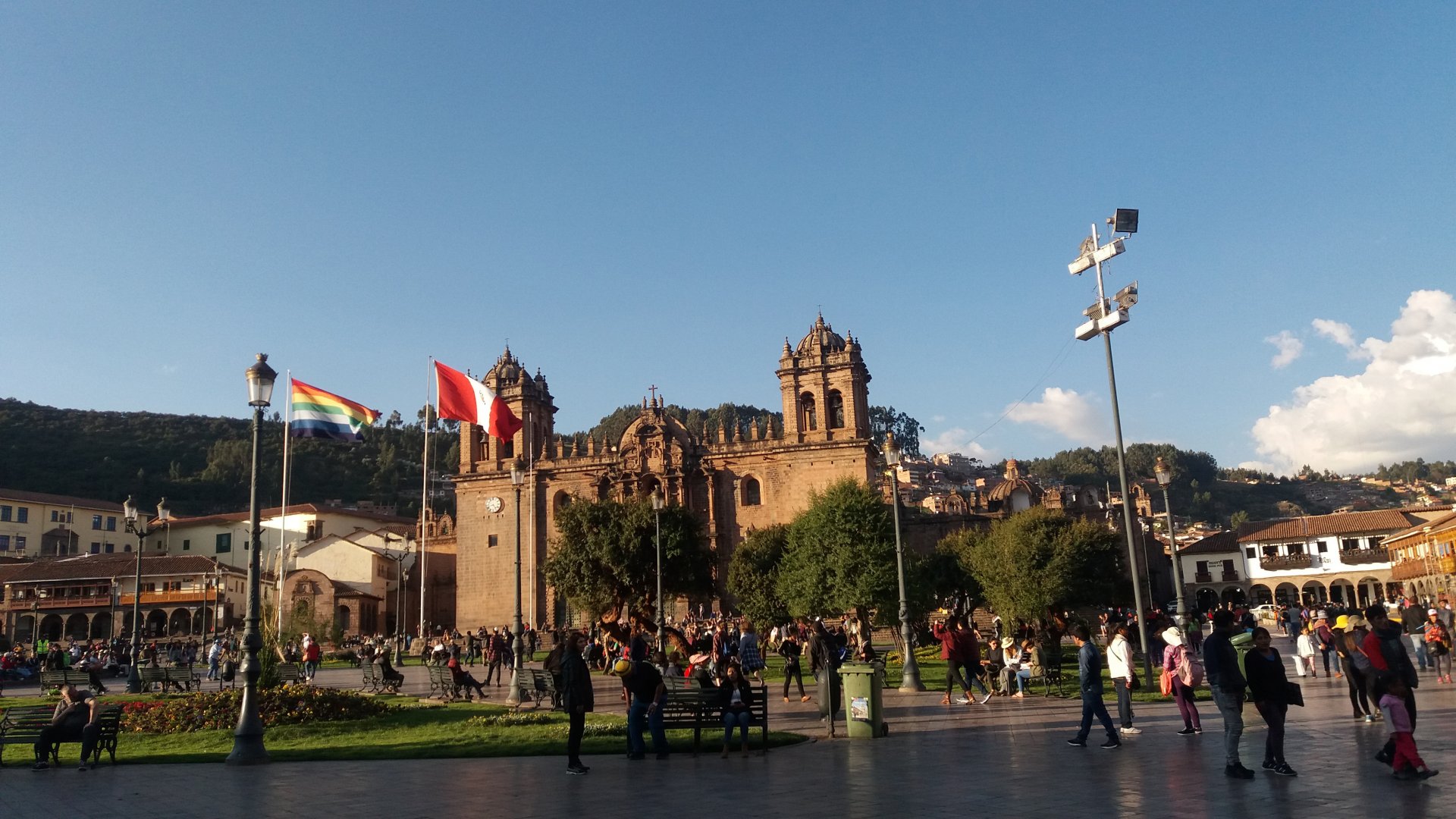 A praça de Cusco é maravilhosa. Chegamos ali, sentamos no banco até nos situar. O clima estava ótimo, sem calor, sem frio, sem chuva. A ideia era achar um hostel que tinha perto do Loki, porém achamos um no meio do caminho e foi lá mesmo que ficamos (Que também é perto do Loki).