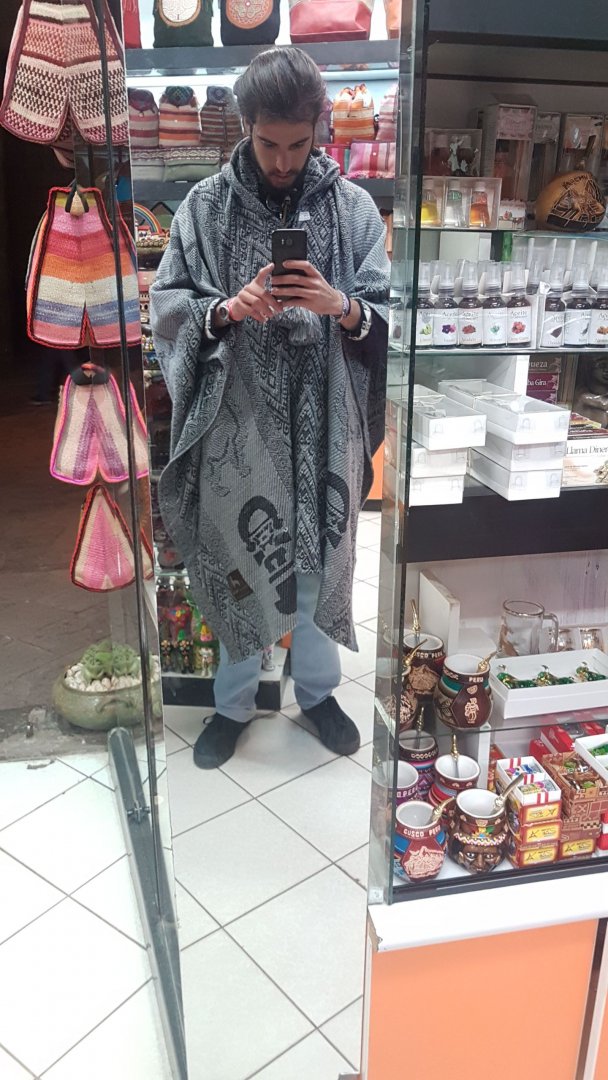 Depois de tantas compras, lembrei que ainda precisava comprar o poncho que minha tia tinha encomendado. Achei uma loja no caminho de volta até a Plaza de Armas, encontrei um poncho gigante, que aparentemente era de lã de alpaca, mandei foto para minha tia, ela aprovou e comprei, S/ 110. A melhor coisa foi eu ter comprado a mochilinha de S/ 25 mais cedo, porque não tinha mais sacolas que coubessem tantas coisas. No fim das contas, tive que voltar para a casa de câmbio, porque os soles que tinham me sobrado, não iam dar até Puno, e não queria trocar dinheiro lá, a cotação provavelmente seria pior, então voltei na Avenida El Sol e troquei mais US$ 30 por S/ 97,50. Quando já estava quase escurecendo, o Ricardinho do hostel me mandou mensagem perguntando se eu tinha comprado a passagem para Puno já, eu disse que sim, então ele me disse que queria ir junto também, mas que não estava conseguindo comprar pelo site da Cruz del Sur, e que na hora era capaz de não ter mais passagens para hoje. Felizmente eu estava passando bem na frente da loja onde tinha comprado a minha, disse que eu tentaria comprar na loja e depois ele me pagava. Comprei a passagem para ele, ainda tinham vários lugares disponíveis.