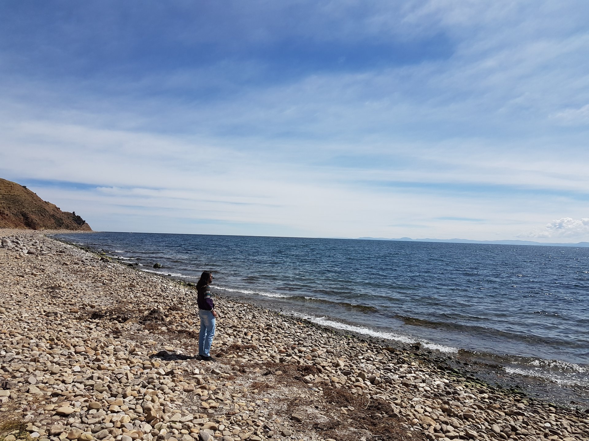 Por volta da 1 da tarde voltamos para o cais, comemos um hambúrguer duvidoso por Bs. 10 e embarcamos de volta a Copacabana, o trajeto de barco é bem demorado, mais de 1 hora. Chegamos em terra firme e fomos para a agência pegar nossas coisas, a vendedora perguntou se íamos para La Paz, respondemos que sim, e ela já nos ofereceu a passagem por Bs. 30. Aproveitei e fui ao banheiro, tive que pagar Bs. 3 para usar, comprei água e papel higiênico numa vendinha por Bs. 10. Quando eram umas 4 da tarde, a mulher da agência parou um ônibus no meio da avenida, falou para o motorista que íamos para La Paz, ele parou, guardou nossas mochilonas no bagageiro (tudo no meio da avenida), embarcamos e seguimos para La Paz.