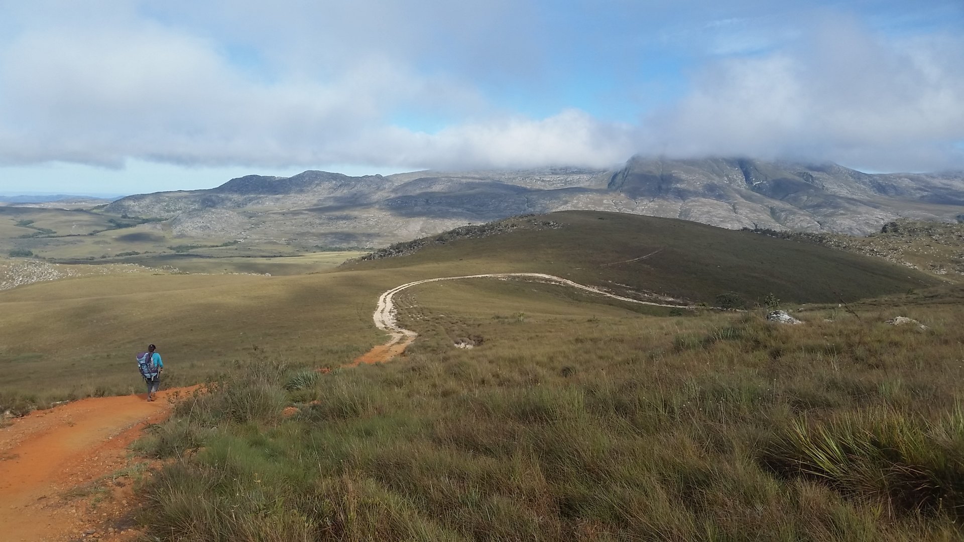 Primeiro descampado,  a trilha está bem demarcada,  acima pequena mata que iríamos passar logo a seguir