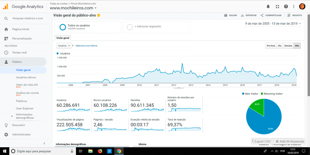 Colaboradores RicardoRM Postado Março 17, 2019 Colaboradores Postado Março 17, 2019 9 horas atrás, Silnei disse: Primeiro eu vou postar os números de acesso ao site ao longo dos anos: Os números acima mostram o acesso ao site desde 2006 quando ele passou a ser medido pelo Google Analytics, antes disso essa ferramenta não existia. Como vcs podem ver, não parece que mudou muita coisa, ou até mudou, estamos em um dos melhores momentos, mas eu sei do que vocês estão sentido falta. O que muitos usuários (principalmente os antigos) sentem falta é o senso de comunidade que existia em muitos fóruns da internet, incluindo o Mochileiros.com e sentem falta também da profundidade do conteúdo criado por conta disso. Esse senso foi se dissipando ao mesmo tempo em que os blogs e as redes sociais foram tomando conta do cenário da internet. As pessoas deixaram de serem membros de comunidades para se tornarem protagonistas de seus próprios blogs e perfis de rede social e muitos já perceberam que esse caminho abriu um buraco que não foi e não será tapado com essas ferramentas. Esse novo cenário criou meia dúzia de pseudo celebridades, cada um na sua área e uma multidão de "ninguéns solitários" sedentos por likes. Por conta disso o conteúdo ou empobreceu ou ficou menos colaborativo e no final todos perderam. Não adianta ter quantidade sem qualidade e o nosso grupo de Facebook pra não usar outro exemplo, é uma prova disso. Tem muito mais interação, mas o conteúdo em 90% dos casos é de chorar. Esse fórum tem menos interações que antes? Sim e não! Sim, porque ele foi criado antes do Google, Blogs, Facebook, Twitter, WhatsApp etc, etc. Então, o fórum era usado pra tudo isso aí e coitado dos admins que tinham que aguentar o ranço humano que vinha junto com tudo isso. E não, porque o que interessa segue sendo postado e esse tópico e a prova disso e os números não mentem. Mesmo com toda essa mudança na internet o número de posts diários está dentro da média histórica do site. E pq pra alguns parece que tem menos posts? Porque o senso de tempo da nova web que é 70% acessada por smartphones mudou. Tudo é instantâneo, logo um fórum que não tem esse senso de urgência, fica parecendo algo lento. Simples assim. Em relação aos usuários que perguntam e saem correndo ou não agradecem, isso além de ser histórico e cultural, também faz parte desse buraco que deixou pra trás o senso de comunidade. No mais, o espaço continuará aqui, pelo menos até quando eu estiver vivo, independente do formato que adquirir ao longo do tempo e se alguém se interessar em querer contribuir para que ele possa melhorar, estamos aqui pra ouvir. Só não vale achar que temos a mesma estrutura que um Google e Facebook e que podemos mudar tudo da água pro vinho, bastando pra isso apenas ter vontade. Vontade é o que nunca faltou, tanto que esse é um dos poucos sites sobreviventes dos anos 90 que ainda se mantém ativo e firme! Tá ruim aqui? As redes sociais são piores em todos os aspectos! Realmente me identifico com alguns pontos que você disse, as pessoas em sua maioria querem na hora algo que elas mesma não irão replicar lá na frente. Sou saudosista dos bons tempos no site, lembro-me que peguei dicas aqui para minha lua de mel no Chile em 2012, mas só vim registrar alguns meses depois já em 2013 quando fomos pela primeira vez a Bolívia e Peru. Participei de alguns tópicos de companhia para viajar, conheci 2 membros do site em lugares diferentes da Bolívia que participaram dos mesmo tópicos, o mais engraçado de tudo é que ninguém tinha marcado de se encontrar pelo caminho, foi na base de coincidência. O que tinha marcado de encontrarmos em Copacabana foi furtado em La Paz e atrasou todo seu roteiro. Coisas da vida. Talvez um dia estes novos usuários aprendam o que é compartilhar alguma informação sem ter que ganhar milhares de likes e alguns minutos de fama. 2 1 Citar