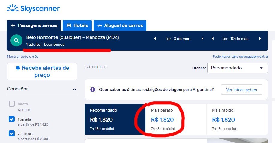Membros de Honra Luka Izzo Postado Novembro 25, 2021 Membros de Honra Postado Novembro 25, 2021 Concordo com o pmichelazzo, busão até Mendoza, além do preço que vai pagar de ônibus, considerando também a volta, alimentação e bebidas durante as 30 horas de viagem, vai acabar ficando mais caro que um 'ida e volta' aéreo. Fiz uma busca rápida aqui em data aleatória de 2022 e encontrei ida e volta Belo Horizonte x Mendoza por 1.800 reais. Esse preço pode baixar se o colega conseguir pegar uma promoção. Também tive a curiosidade de pesquisar GRU (SP) x Mendoza (ida e volta) encontrando preços na faixa de 1.500 reais. Outra coisa que daria para considerar é um voo mais econômico, até Buenos Aires e de lá você seguiria de ônibus até Mendoza: talvez seja uma saída para economizar mais um pouco. Espero ter ajudado.. abçs. Citar