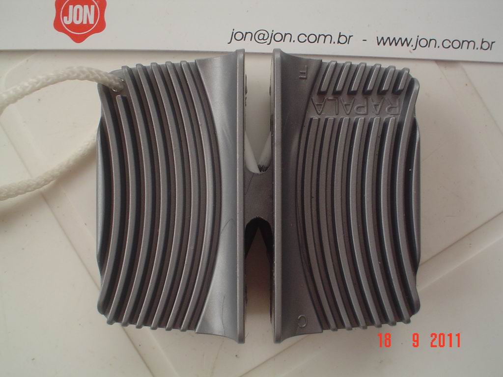 Membros cabraljr Postado Setembro 18, 2011 Membros Postado Setembro 18, 2011 Afiador duplo de cerâmica Rapala (de bolso ) Eu já havia comprado 10 afiadores de cerâmica da marca Gerber para presentear os amigos, mas como eles só deverão chegar no fim de setembro e neste meio tempo me deparei com um afiador praticamente igual, ao menos em design e acho que com os mesmos materiais, só que vendido aqui no Brasil e a um preço que parece brincadeira: entre R$5,40 e R$7,00 ( isso mesmo, reais! ). Comprei 5 para testar, pois incluindo o frete PAC, me custaram exatos R$7,50 cada um! Apesar da Rapala ser finlandesa, os afiadores são produzido na China. Não apresenta nenhuma parte metálica, sendo seu corpo todo de polímero plástico e as pequeninas hastes afiadoras em cerâmica, obviamente. Sua construção é em monobloco, à exceção da pequena plaquinha plana onde vem estampado “Made in China” que é colada ao monobloco e que serve para selar o compartimento onde são posicionadas as hastes cerâmicas. Suspeito que se colocado em água morna e até um pouco quente, seja possível remover tal plaquinha para ter acesso às hastes; isso fica para o futuro... Ele tem 6,7cm de largura por 5,6cm de altura, 1cm de espessura das abas laterais , 2,2cm de espessura máxima e pesa exatos 24g. As laterais tem grooves curvos para maior grip ao segurá-la. É completamente ambidestra. Há um pequeno furo em um dos cantos para se colocar um cordão ou key ring. Sua abertura de pouco mais de 5mm permite que lâminas de até 5mm de espessura na espinha sejam afiadas. Vale lembrar de que este sistema não serve para lâminas com fio convexo, pois o ombro do fio irá tocar nas hastes, e não o fio propriamente dito! As hastes cerâmicas não são “soldadas” ao monobloco, mas mantidas na posição por pequenos anteparos ou escoras plásticas fixas ao corpo do afiador. Por isso as hastes podem ter algum movimento de giro em torno de seu próprio eixo se forçadas a tal, coisa que de forma alguma influencia sua eficácia. Para testá-la usei uma faca Rapala fileteira que refiz o perfil para ficar mais curta, como uma faca de destrinchar, para uso mais geral. Como estava afiada, simplesmente a passei com força na quina da mesa de ardósia; ficou mais cega que peixe de caverna. Vale lembrar que este sistema é muito eficiente na manutenção de fio de lâminas tipo fileteiras com muita flexibilidade, pois como a lâmina é passada exatamente a 90 graus ( com a espinha reta na vertical ), não há torcionamento ou flexão na lâmina ( como haveria no Sharpmaker por exemplo ), ficando mais fácil o processo e afiando uniformemente até a ponta. Lâminas de serra com dentes maiores, como as facas de pão também podem ser afiadas neste afiador. Não é o ideal, já que ele irá afiá-las dos dois lados, sendo que estas facas normalmente só tem o fio tipo cinzel, ou seja só de um lado, sendo o outro lado plano. Mas o que pode acontecer com esta faca então? Ela ficará com um fio bastante afiado, só que mais frágil, de vez que será desbastado dos dois lados e não de um lado só. Como alguém deve estar se perguntando se pode passar as lâminas como se estivesse serrando, ou seja, ao invés de só posicionar a lâmina e puxá-la para trás, se pode também em movimento continuo empurrá-la para frente, como se faz com um serrote? A resposta é sim! Claro que sem fazer pressão. Isso pode até acelerar um pouquinho o processo, mas aconselho a pelo menos as 5 últimas passadas serem só puxando a lâmina para “fora” do afiador, de modo a uniformizar o fio, principalmente da ponta da lâmina. Comecei é claro passando pelo lado coarse. Passei umas 10x e testei ( teste da unha e tentando cortar papel de bula ) e nada. Mas 10x e nada. Repeti este ritual várias vezes totalizando provavelmente mais de 100 passadas e nada! Então peguei meu kit de hastes cerâmicas e usando a mais coarse no set de 20 graus de cada lado ( 40 inclusos ), com umas 15 passadas de cada lado consegui um fio muito bom ( acho que fiz um excelente trabalho ao cegar o fio inicialmente ). Minha preocupação agora não era mais de verificar se o afiador Rapala iria dar fio, mas se não iria prejudicá-lo! Peguei então uma caneta do tipo magic marker e passei apenas no novo fio de 20 graus de cada lado da faca e passei a lâmina no afiador Rapala. O resultado foi duplamente satisfatório, já que além de não prejudicar o fio, ficou claro pelo padrão de remoção da tinta que os ângulos coincidiram perfeitamente, ou seja, o Rapala tem exatos 40 graus inclusos, 20 de cada lado. Só deixando esta parte bem clara para os novatos: não é que seja 20 graus no lado fino e 20 no lado grosso/coarse; é que o V formado pelas hastes tem 40 graus totais, sendo 20 graus de cada lado do fio da faca. Como tenho mais afiadores e este é baratinho, promovi um pequeno teste de resistência: deixei cair o afiador de uma altura de 1metro em um piso de cerâmica, simulando como se estivesse em cima de uma mesa ou bancada. Saiu incólume. Novamente deixei cair de 1m de altura, mas agora não mais de forma estática, mas fazendo um “pequeno lançamento” como se ele escapulisse das mãos e caísse um pouco à frente; nada aconteceu. Resolvi então testar de uma altura de 1,5m, como se ele estivesse sendo seguro por uma das mãos ao afiarmos uma lâmina de pé. Mais uma vez resistiu. Novo teste a 1,5m simulando uma escapulida ( ligeiro lançamento ) e mais uma vez nada. Tanto o corpo quanto as hastes resistiram bem. Como era visível a área acinzentada nas cerâmicas escuras ( coarse ) e as marcas negras nas cerâmicas brancas, resolvi tentar limpá-las em um cavitador ultrasônico, só com água durante 1 minuto; nenhum efeito visível. Usei então uma solução bem fraca de ácido sulfúrico também por 1 minuto. Desta vez houve um relativo sucesso, pois apesar de ainda poderem ser vistas as marcas, estas ficaram nitidamente bem mais claras